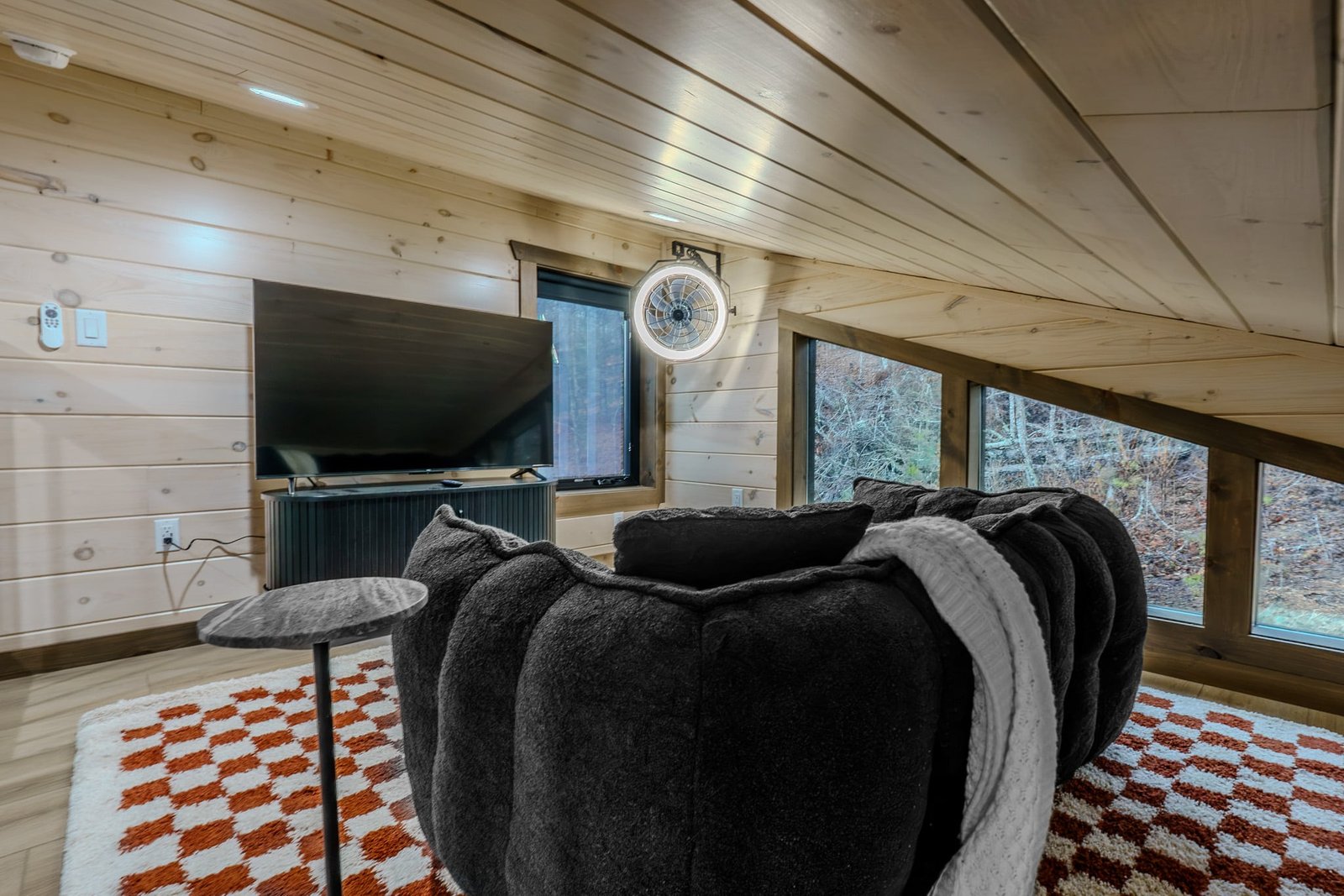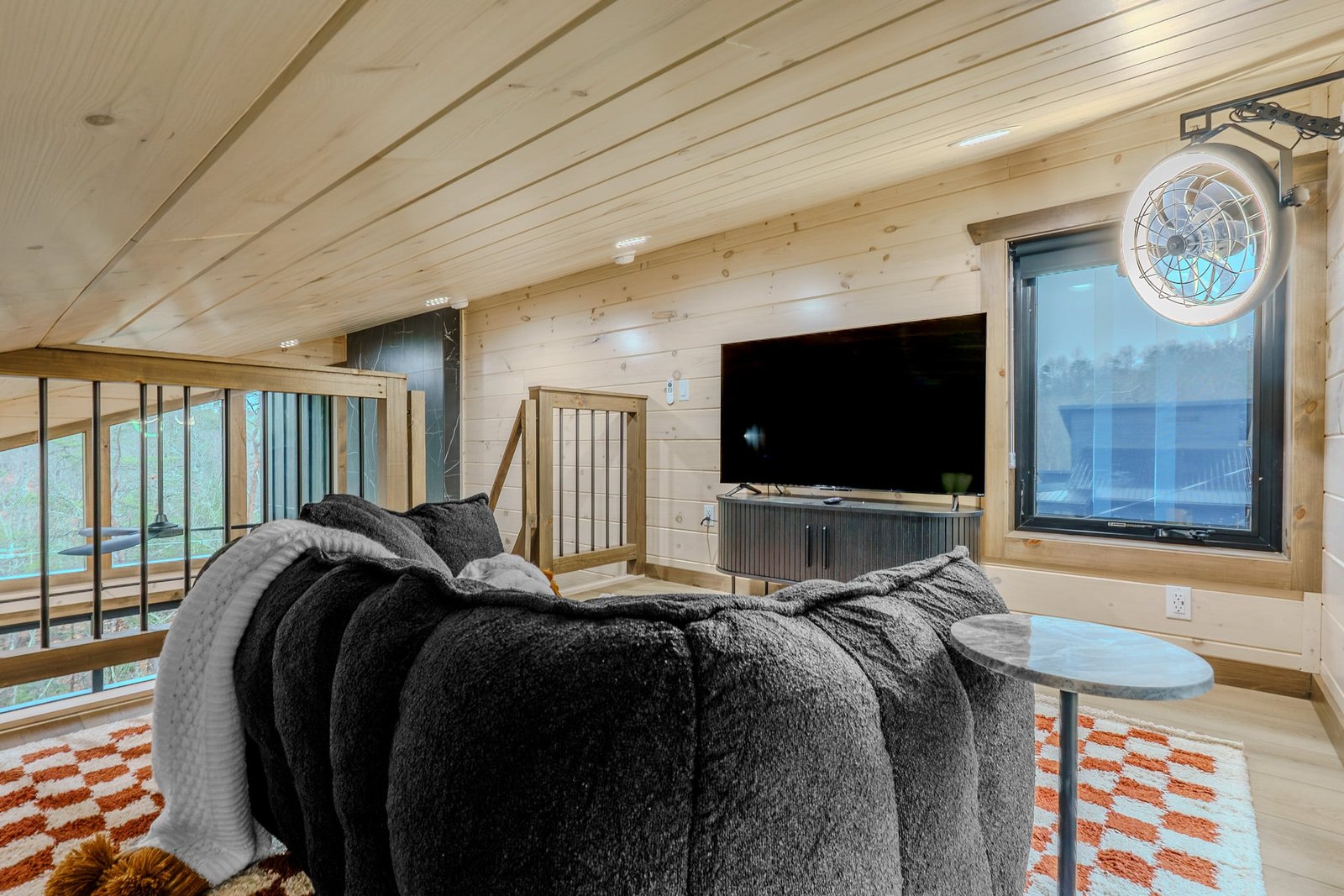 Head up to the cozy loft and discover the perfect spot for movie nights and laid-back fun. This inviting space features a plush lounge sofa, large TV, and warm wood accents that make it feel like your own private hideaway. It’s ideal for streaming your favorite shows, relaxing after a day of exploring, or enjoying quiet downtime. We’re also working on adding an Xbox and gaming console to elevate the entertainment experience even more, making the loft a favorite hangout for couples, friends, and families.